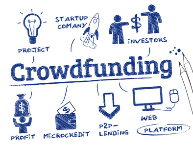 crowdfunding concept. Chart with keywords and icons